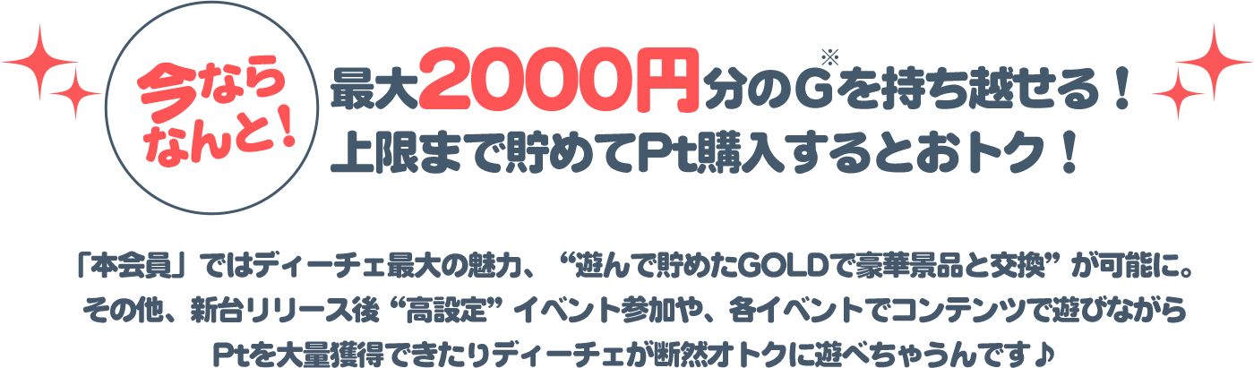 ・Ptを購入し本会員に変更されたユーザー様は、限定機種での遊戯や景品交換など様々なサービスがご利用頂けます。