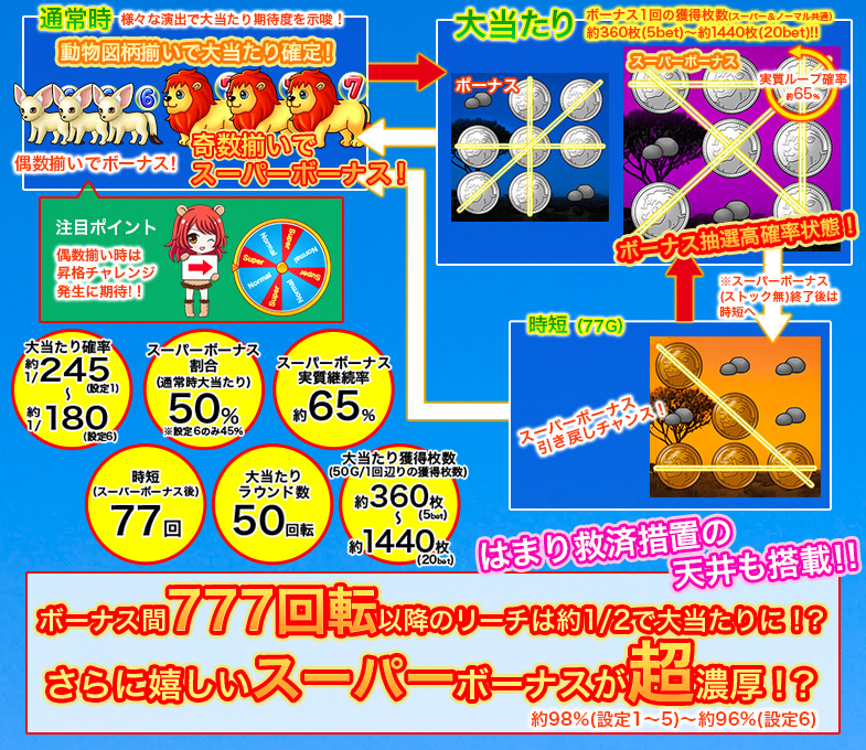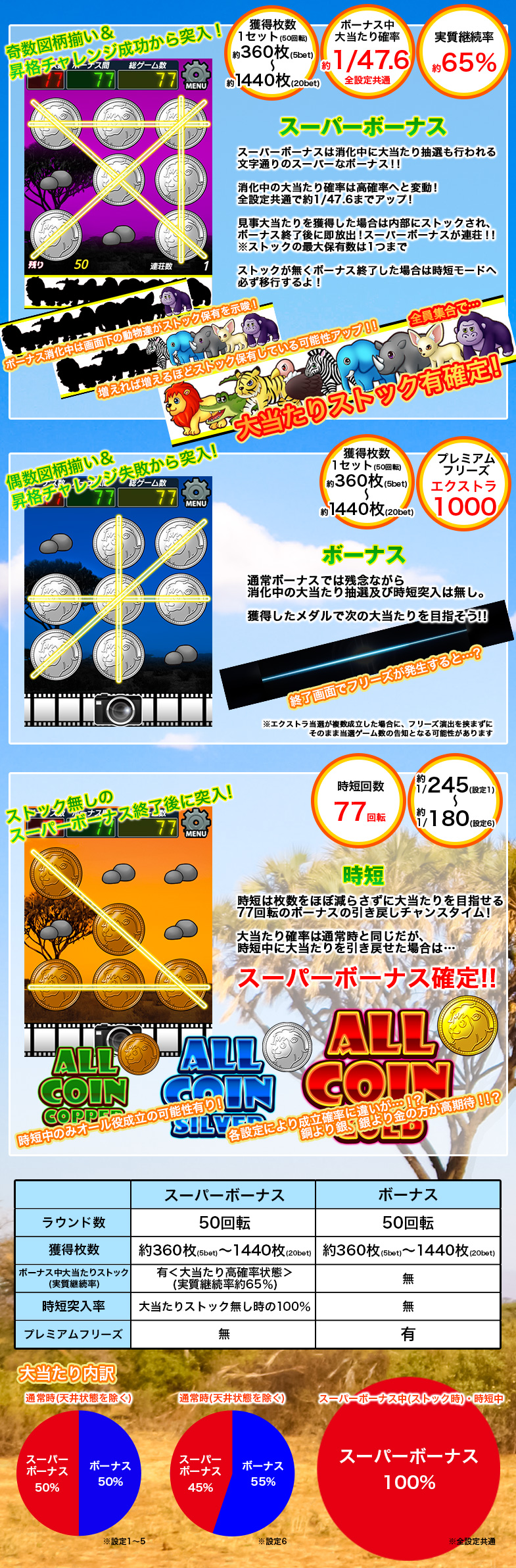 設定が高い程メダルを獲得する可能性が高くなります。詳細はスペック表にてご確認ください。