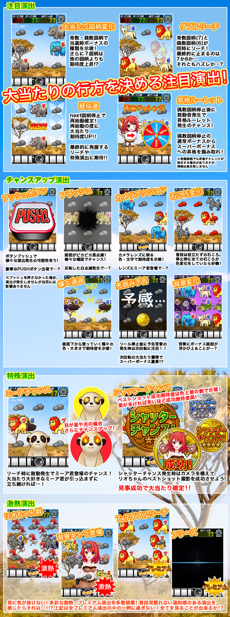 ・終了:8ラインスロット「サバンナツアーズ」を終了します。獲得した経験値はこのボタンを押したときに反映されます。
