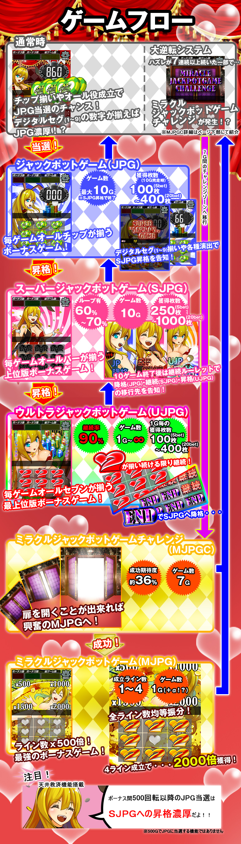 オール7などの役によりEXPが加算されます。 さらにポイントエリアでは毎ベット(Pt)分のEXPが加算されます。 -