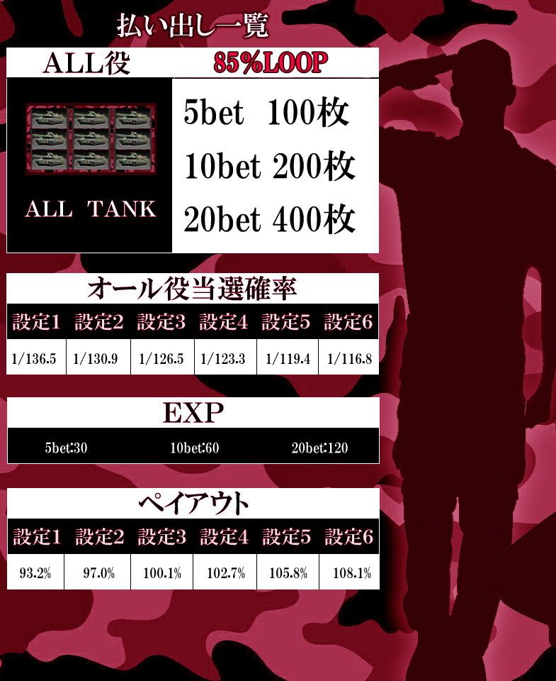 オール7などの役によりEXPが加算されます。 さらにポイントエリアでは毎ベット(Pt)分のEXPが加算されます。 -