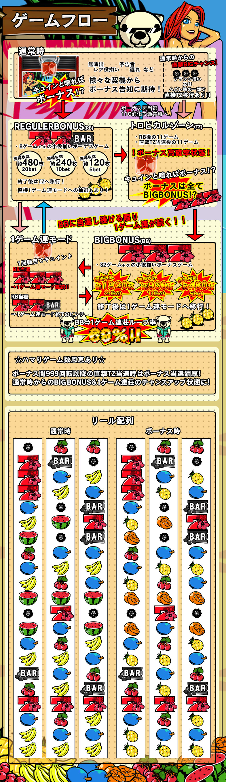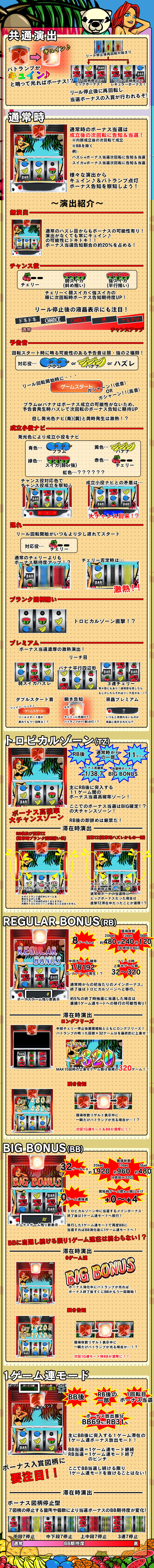 8ラインスロット「南国チェリーボムin a Sunny Place ver」はMAXベット専用機です(MAXベットはポイントエリアの場合5ポイントのみとなります。チケットエリアの場合は5枚/10枚/20枚の3種類の台からお選び頂けます)。